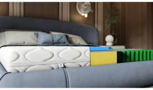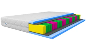 Materac wykonany na bazie sprężyn kieszeniowych, które połączone są ze sobą za pomocą specjalnych kieszonek w system, który sprawia, że każda jego część pracuje niezależnie od pozostałych, zapewniając elastyczność punktową materaca.