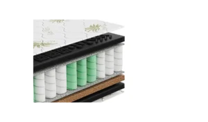 Materac masujący Aloe Vera Hyperelastic Black 22cm to innowacyjne połączenie sprężyn kieszeniowych, pianki poliuretanowej oraz warstwy kokosa, zapewniające doskonałe wsparcie i komfort snu. Dzięki dwustronnej konstrukcji, właściwościom zdrowotnym i regeneracyjnym, a także łatwości w pielęgnacji, jest to idealny wybór dla osób szukających wygody, trwałości i zdrowego snu.